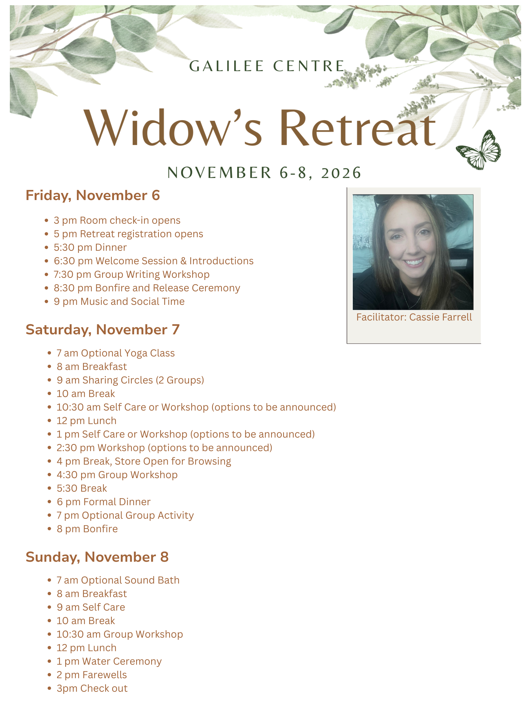 This retreat is created to offer widows a gentle and welcoming space where peace, connection, and healing can be found. It is a time to be surrounded by support, reminded that you are not alone, and to share in comfort with others who understand.